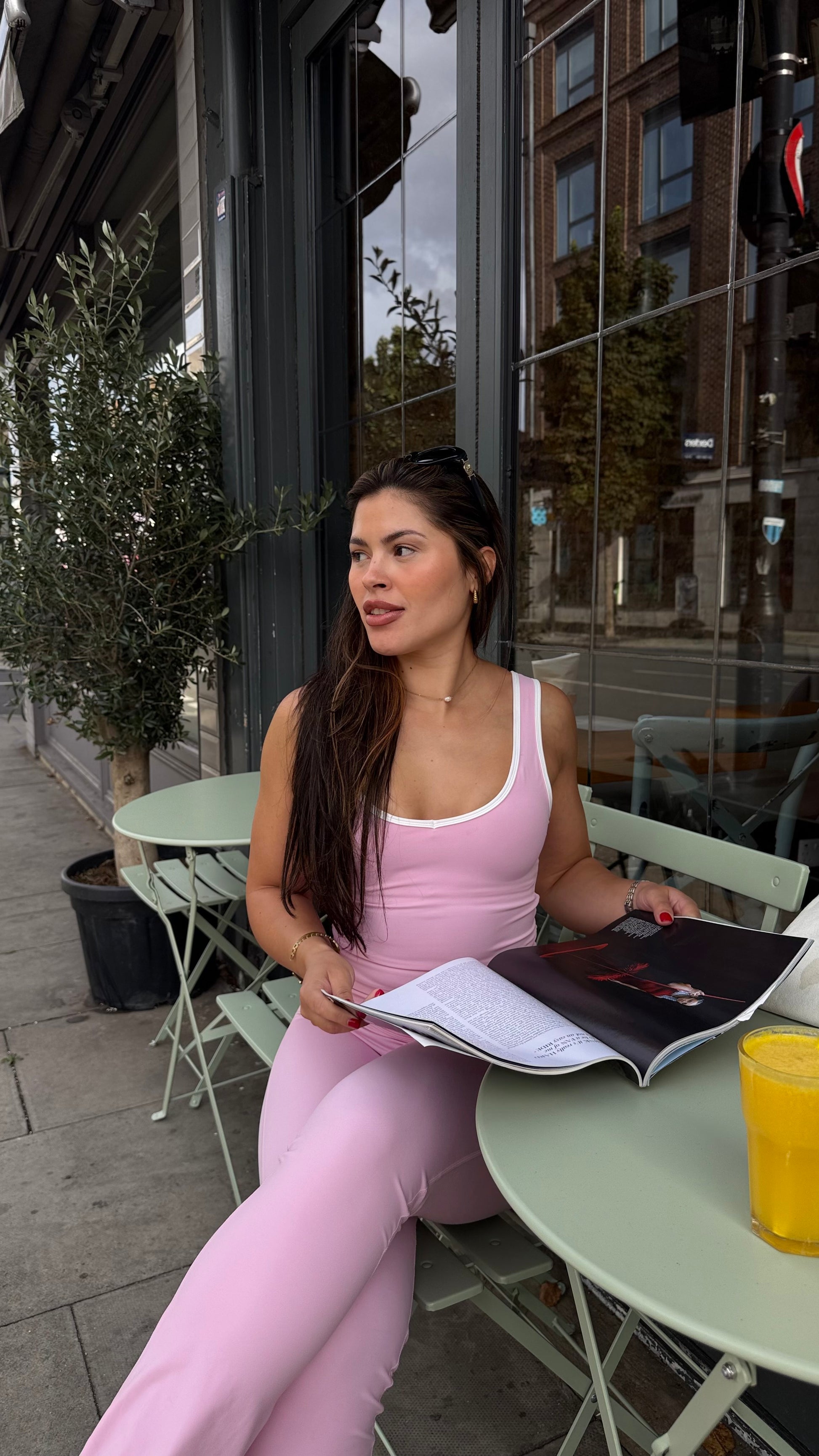 Designed with a flattering scoop neckline and contrast trim, this top is double-layered for light support and all-day comfort. The moisture-wicking fabric keeps you dry, whether in Pilates class or paired casually with denim.